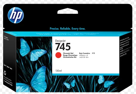 HP 745 (F9K00A) Chromatic Red Original Ink Cartridge (130 ml). Durable — water/scratch/fade-resistant and archivable prints last up to 200 years with HP Vivid Photo Inks.